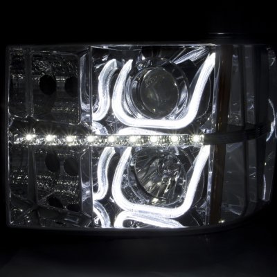 • GMC Sierra Denali 2008-2013 Chrome Halo Bar Projector Headlights LED DRL