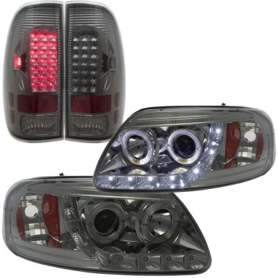 Ford F150 1997-2003 Smoked LED DRL Halo Projector Headlights LED Tail Lights
