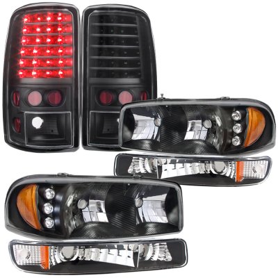 GMC Yukon XL 2000-2006 Black LED DRL Headlights Set and LED Tail Lights