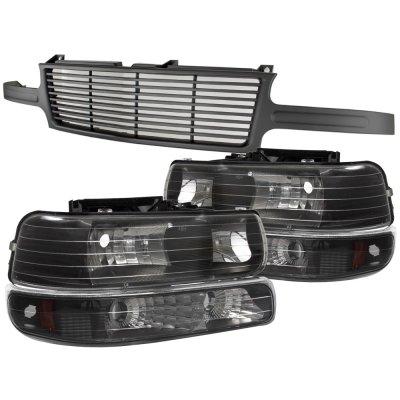 Chevy Suburban 2000-2006 Black Billet Grille and Headlights Bumper Lights