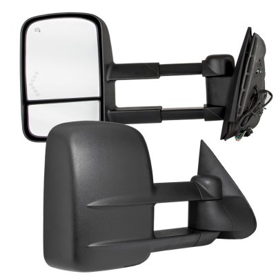 This GMC Sierra 1500HD Towing Mirrors will fit 2003, 2004, 2005, 2006 GMC Sierra 1500HD. GMC Sierra 1500HD 2003-2006 Towing Mirrors Power Heated LED Signal Lights also features Power Mirror Angle Adjustment,Heated Mirror,Integrated LED Turn Signal Lights,Mirror Glass Size: 12" x 7.5",Manual Extend by Telescoping,Closed Length: 17",Extended Length: 21",Manual Folding. Replace or upgrade your GMC Sierra 1500HD Towing Mirrors with our GMC Sierra 1500HD 2003-2006 Towing Mirrors Power Heated LED Signal Lights.