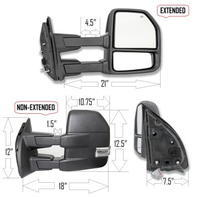 This Ford F450 Towing Mirrors will fit 2003, 2004, 2005, 2006, 2007 Ford F450. Ford F450 Cab Chassis 2003-2007 Towing Mirrors LED DRL Lights Power Heated also features 2017 Facelift Style Towing Mirrors, Built-in LED Turn Signal Lights, Power Mirror Angle Adjustment, LED Puddle Lights (Wiring Required), White LED Spot Lights, Heated Mirror, Manual Extend by Telescoping, Manual Folding. Replace or upgrade your Ford F450 Towing Mirrors with our Ford F450 Cab Chassis 2003-2007 Towing Mirrors LED DRL Lights Power Heated.