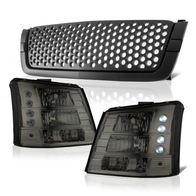 Chevy Silverado 1500 2003-2005 Black Custom Grille and Smoked Headlights Conversion