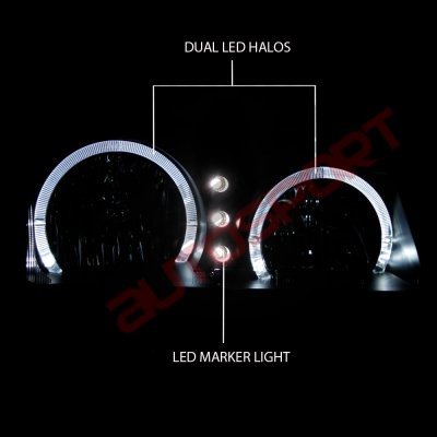 Chevy Silverado 2500HD 2003-2004 Black Front Grille and Halo Headlights
