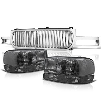 • GMC Yukon XL 2000-2006 Chrome Vertical Grille and Smoked Clear Headlights Set