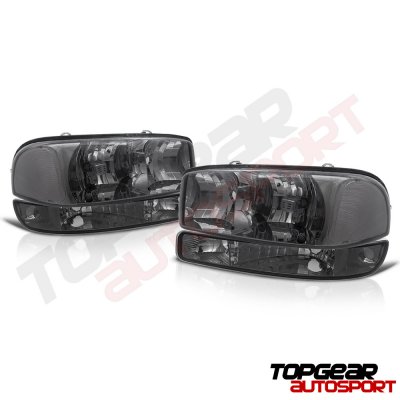 GMC Yukon XL 2000-2006 Chrome Vertical Grille and Smoked Clear Headlights Set