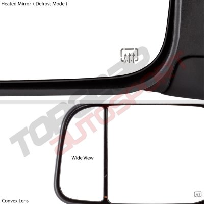This Dodge Ram 2500 Towing Mirrors will fit 2010, 2011, 2012, 2013, 2014, 2015, 2016, 2017, 2018 Dodge Ram 2500. Dodge Ram 2500 2010-2018 Power Heated Towing Mirrors Smoked Signal Lights Temp Sensor also features Smoked LED Turn Signal Lights, Puddle Lights, Power Mirror Angle Adjustment, Heated Mirror, Mirror Glass Size: 11.5" x 8", Manual Extend by Outward Rotation, Closed Length: 16.5", Extended Length: 19.5", Manual Folding. Replace or upgrade your Dodge Ram 2500 Towing Mirrors with our Dodge Ram 2500 2010-2018 Power Heated Towing Mirrors Smoked Signal Lights Temp Sensor.