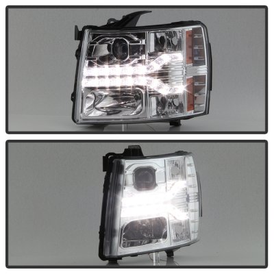 Chevy Silverado 2500HD 2007-2013 Clear Projector Headlights LED DRL Facelift