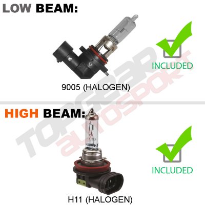 • (2) H11 Low Beam Halogen Light Bulbs