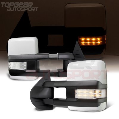 GMC Sierra Denali 2007-2013 White Towing Mirrors Clear LED Lights Power Heated
