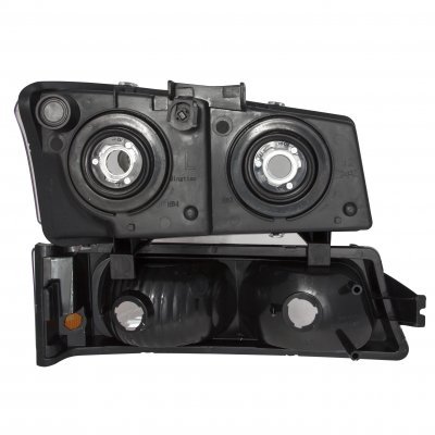 Chevy Silverado 2500HD 2003-2004 Black Gray Grille and Headlights Set