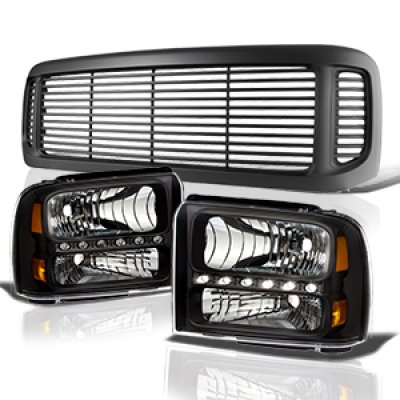 Ford F350 Super Duty 1999-2004 Black Grille and LED DRL Headlights