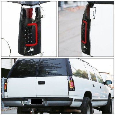 • GMC Sierra 1988-1998 Black Smoked LED Tail Lights Red Tube