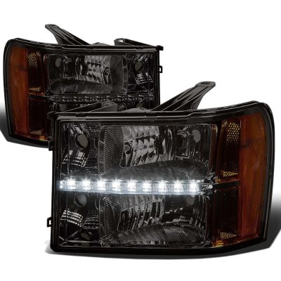 GMC Sierra 3500HD 2007-2014 Smoked Headlights LED DRL