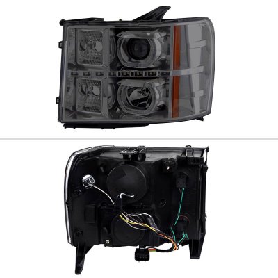 This GMC Sierra Denali Projector Headlights will fit 2008, 2009, 2010, 2011, 2012, 2013 GMC Sierra Denali. GMC Sierra Denali 2008-2013 Smoked Halo Projector Headlights LED also features Projector Style Lighting,Direct Replacement,Easy Installation. Replace or upgrade your GMC Sierra Denali Projector Headlights with our GMC Sierra Denali 2008-2013 Smoked Halo Projector Headlights LED.