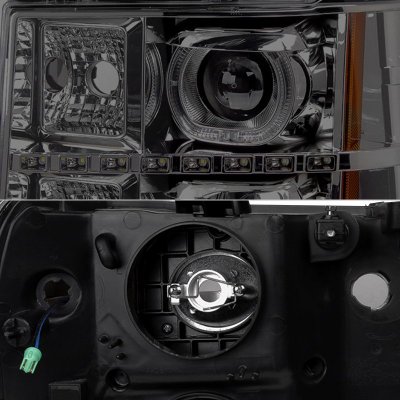 • GMC Sierra Denali 2008-2013 Smoked Halo Projector Headlights LED