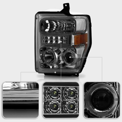 Ford F550 Super Duty 2008-2010 Smoked Projector Headlights Halo LED