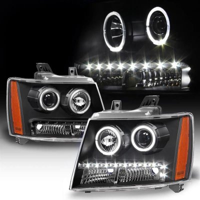 Chevy Suburban 2007-2014 Black Halo Projector Headlights LED