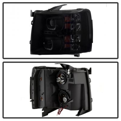 This Chevy Silverado 3500HD Projector Headlights will fit 2007, 2008, 2009, 2010, 2011, 2012, 2013, 2014 Chevy Silverado 3500HD. Chevy Silverado 3500HD 2007-2014 Black Smoked Halo LED DRL Projector Headlights also features Low beam H3, High Beam H1. Replace or upgrade your Chevy Silverado 3500HD Projector Headlights with our Chevy Silverado 3500HD 2007-2014 Black Smoked Halo LED DRL Projector Headlights.