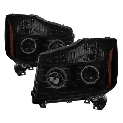 Nissan Armada 2004-2007 Black Smoked LED Halo Projector Headlights