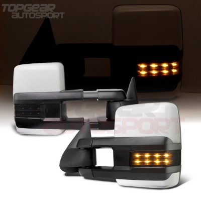 This GMC Yukon XL Denali Towing Mirrors will fit 2003, 2004, 2005, 2006 GMC Yukon XL Denali. GMC Yukon XL Denali 2003-2006 White Towing Mirrors Smoked LED Lights Power Heated also features 2015 Facelift Style Towing Mirrors, White Painted Cover, White Color Code: WA8624, Power Mirror Angle Adjustment, Heated Mirror, Integrated LED Turn Signal Lights, LED Rear Guidance Lamps (Wiring Required), Manual Extend by Telescoping, Manual Folding. Replace or upgrade your GMC Yukon XL Denali Towing Mirrors with our GMC Yukon XL Denali 2003-2006 White Towing Mirrors Smoked LED Lights Power Heated.