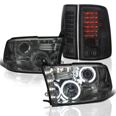 Dodge Ram 3500 2010-2018 Smoked Halo Projector Headlights and LED Tail Lights