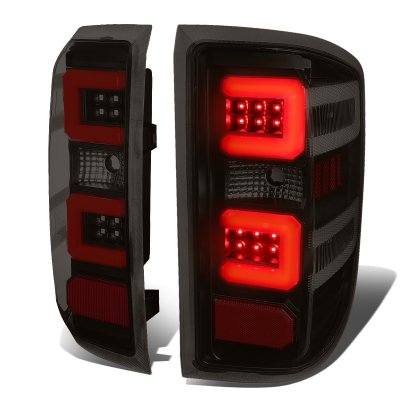 Chevy Silverado 2500HD 2015-2019 Black Smoked LED Tail Lights Red C-Tube