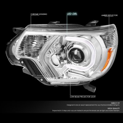 This Toyota Tacoma Projector Headlights will fit 2012, 2013, 2014, 2015 Toyota Tacoma. Toyota Tacoma 2012-2015 Projector Headlights Tube DRL also features Projector Style Lighting,Direct Replacement,Easy Installation. Replace or upgrade your Toyota Tacoma Projector Headlights with our Toyota Tacoma 2012-2015 Projector Headlights Tube DRL.