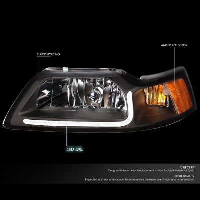 Ford Mustang 1999-2004 Black Headlights Tube DRL