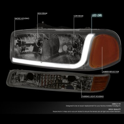 GMC Sierra 2500 1999-2004 Smoked Headlights Tube DRL