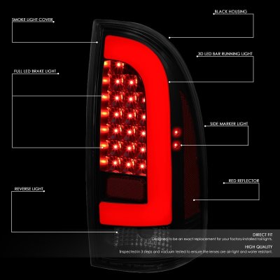 Toyota Tacoma 2005-2015 Black Smoked Tube LED Tail Lights