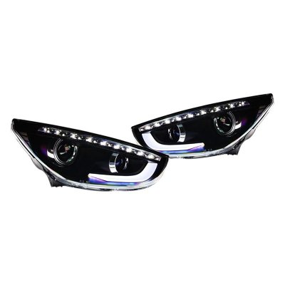 This Hyundai Tucson Projector Headlights will fit 2010, 2011, 2012, 2013 Hyundai Tucson. Hyundai Tucson 2010-2013 Black Projector Headlights LED DRL also features Projector Style Lighting,Direct Replacement,Easy Installation. Replace or upgrade your Hyundai Tucson Projector Headlights with our Hyundai Tucson 2010-2013 Black Projector Headlights LED DRL.