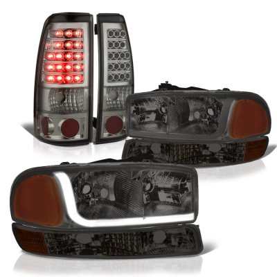 • GMC Sierra 2500 1999-2004 Smoked Tube DRL Headlights LED Tail Lights