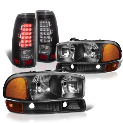 GMC Sierra 1500HD 2001-2006 Black Headlights and LED Tail Lights