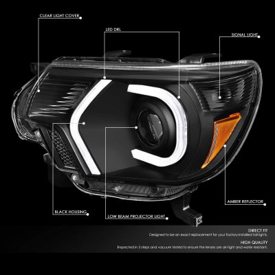 This Toyota Tacoma Projector Headlights will fit 2012, 2013, 2014, 2015 Toyota Tacoma. Toyota Tacoma 2012-2015 Black LED Tube DRL Projector Headlights also features Projector Style Lighting,Direct Replacement,Easy Installation. Replace or upgrade your Toyota Tacoma Projector Headlights with our Toyota Tacoma 2012-2015 Black LED Tube DRL Projector Headlights.
