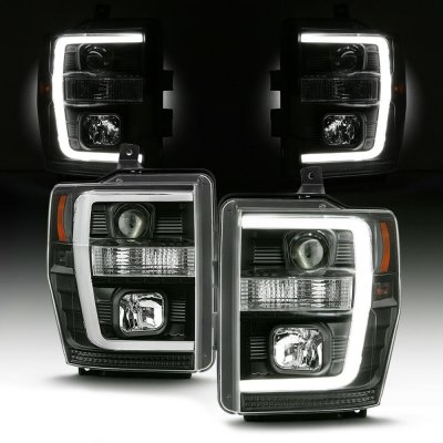 Ford F550 Super Duty 2008-2010 Black Tube DRL Projector Headlights