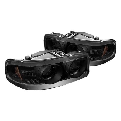 GMC Sierra 2500 1999-2004 Black Smoked Dual Halo Projector Headlights with LED