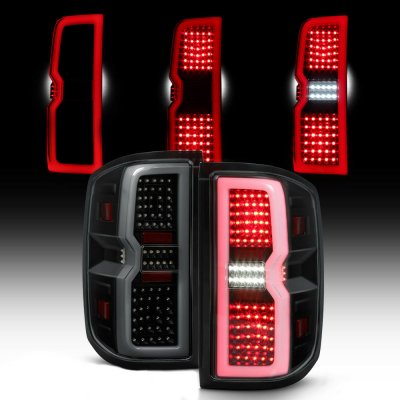 Chevy Silverado 3500HD 2015-2019 Black Smoked Tube Full LED Tail Lights
