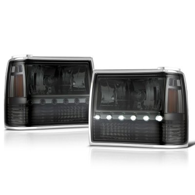Ford Explorer 1991-1994 Smoked Euro Headlights with LED Daytime Running Lights