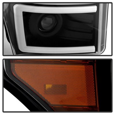 Ford F350 Super Duty 2011-2016 Black LED Tube DRL Projector Headlights