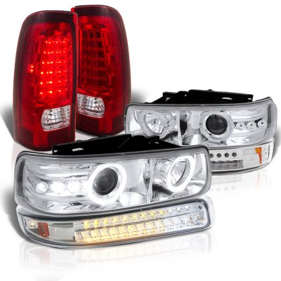 Chevy Silverado 1500HD 2001-2002 Halo Projector Headlights LED Bumper Tail Lights