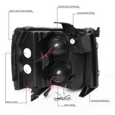 • Chevy Silverado 2007-2013 Black Smoked Facelift DRL Projector Headlights