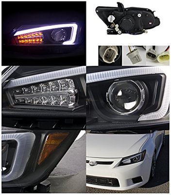 This Scion tC Projector Headlights will fit 2011, 2012, 2013 Scion tC. Scion tC 2011-2013 Black LED DRL Signal Projector Headlights also features Projector Style Lighting,Direct Replacement,Easy Installation. Replace or upgrade your Scion tC Projector Headlights with our Scion tC 2011-2013 Black LED DRL Signal Projector Headlights.