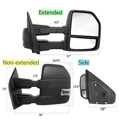 This Ford F150 Towing Mirrors will fit 2009, 2010, 2011, 2012, 2013, 2014 Ford F150. Ford F150 2009-2014 New Towing Mirrors Power Heated LED Signal Puddle Lights also features Built-in LED Turn Signal Lights, Power Mirror Angle Adjustment, Heated Mirror, LED Puddle Lights, Manual Extend by Telescoping, Manual Folding. Replace or upgrade your Ford F150 Towing Mirrors with our Ford F150 2009-2014 New Towing Mirrors Power Heated LED Signal Puddle Lights.
