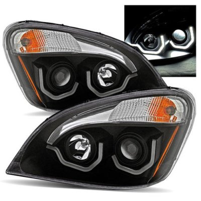 • Freightliner Cascadia 2008-2017 Black Projector Headlights LED DRL