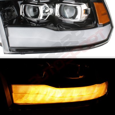• Dodge Ram 2009-2018 Glossy Black DRL Projector Headlights LED Signal Lights