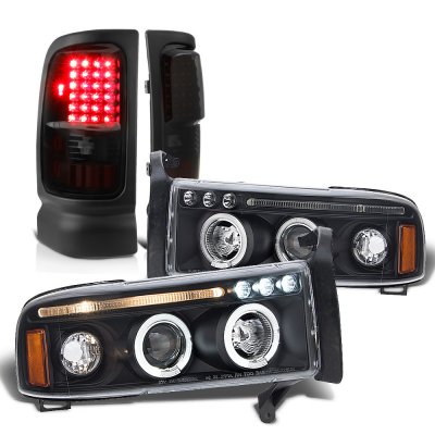 Dodge Ram 1994-2001 Black Tinted Halo Projector Headlights LED Tail Lights