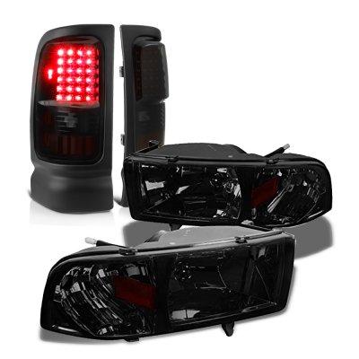 Dodge Ram 1994-2001 Smoked Headlights Black Tinted LED Tail Lights