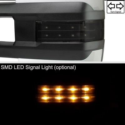 This Chevy Silverado 2500HD Towing Mirrors will fit 2015, 2016, 2017, 2018, 2019 Chevy Silverado 2500HD. Chevy Silverado 2500HD Diesel 2015-2019 White Power Folding Towing Mirrors Smoked LED Lights Heated also features White Mirror Cap, Power Mirror Angle Adjustment, Heated Mirror, Integrated LED Turn Signal Lights, LED Rear Guidance Lamps (Wiring Required), Include Temperature Sensor, Manual Extension, Power Folding. Replace or upgrade your Chevy Silverado 2500HD Towing Mirrors with our Chevy Silverado 2500HD Diesel 2015-2019 White Power Folding Towing Mirrors Smoked LED Lights Heated.