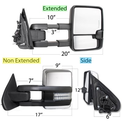 GMC Sierra 2500HD 2015-2019 Chrome Tow Mirrors Switchback LED DRL Sequential Signal